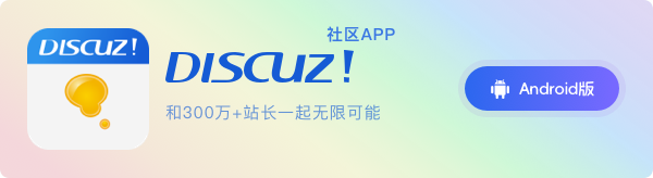 Discuz!? 討論區SaaS 時代的全新 Discuz! 版本,兩分鐘搭建一個社區的時代來了。官網地址:w.discuz.vip |
